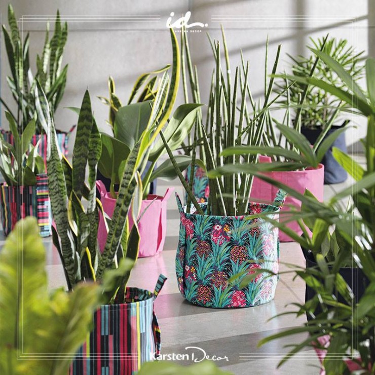 São inúmeras as possibilidades que os tecidos Karsten Decor proporcionam para valorizar a decoração da sua casa. Olha só estes cachepots feitos com tecido da linha ID! Charmosos, não?